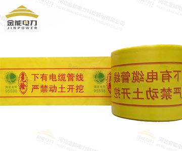 地埋警示帶使用PVC、pe、PP、OPP、鋁箔等構成,色彩鮮艷,薄厚均勻,有很好的拉伸性能,一般為黃色,印制紅色警示字體。地埋警示帶有良好的防腐性能,可以長期埋在地下不變形、不腐蝕。